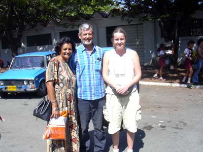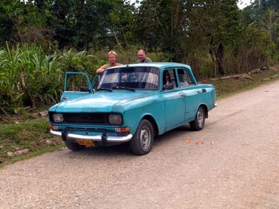 Liebe Grüße, Euer Seefahrer 4.3.06 Hallo Ihr Lieben, Mittwoch ist Tina angekommen, die mich die nächsten Wochen begleiten wird. Mittwoch Abend sind wir in eine Strandbar nahe der Marina gegangen, zu Essen gab es nichts, nur Bier recht billig für Nationalgeld, ungefähr 50 Euro Ct für 0,25 l. Dort haben wir Roberto Ferrer getroffen, ein Sänger und Sohn des berühmten Ibrahim Ferrer vom Buena Vista Social Club. Er hat ein Auto und uns gleich eingeladen, am nächsten Tag mit in die Stadt zu fahren. Kostet nichts.. Auf dem Weg dorthin hat ein Reifen bedenklich geschlackert und er wollte sich schnell einen neuen gebrauchten besorgen, ich habe ihm dafür 15 CUC gegeben. Und Benzin brauchte er auch noch, ich habe ihm 7 CUC gegeben. Und dann waren wir in der Stadt spazieren und auch im Casa de Trova, dem Sängerhaus und dann Essen und dann wollte er uns seine CDs schenken. Für selbstkopierte habe ich dafür nochmal 10 CUC bezahlt. Und aufdem Heimweg hat dann der neue Reifen so geeiert, daß wir ihn wieder gegen den alten ausgetauscht haben. Und 3 km weiter ist der geplatzt, wir haben wieder den eierigen aufgezogen. Nach 50 m ist dann die Felge total zerbrochen und das Auto stand auf der Achse. Er hatte noch einen Ersatzreifen, den wir dann aufgezogen haben, der hatte aber keine Luft. Die letzten km sind wir dann im Schrittempo ohne Luft gefahren. | |