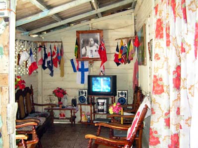 (Erster Eindruck) Die Abreise der Crewmitglieder scheint ohne Probleme zu gehen, ob das für neue Crewmitglieder auch gilt, kann ich in 14 Tagen berichten, solange habe ich erstmal "Urlaub". Ich hoffe, Ihr habt noch keine quadratischen Pupillen, Euer Jürgen, Weltmeister im Stempeln von Formularen (Für uns ist ein eigener Leitz-Ordner im Hafenmeisterbüro angelegt worden) 23.2.06 Hallo Ihr Lieben, Außerhalb der Bürokratie gibt es hier nur unwahrscheinlich nette Menschen. Gleich um die Ecke wohnt Pedro, der mich an der Bushaltestelle angesprochen hat. Mitte 40, wohl arbeitslos (?) und wohnt mit Frau und 3 Kindern, Sohn 16, Töchter 5+7 in einer winzigen Bretterbude. Er hat von allen möglichen Seglern alte Flaggen geschenkt bekommen, die er in seinem Wohnzimmer (4x1,50) aufgehängt hat, gleich über einem Fernseher, DVD-Spieler und , Stereo-Radio und reichlich Plastikblumen. Ich sollte gleich zum Essen bleiben, der Bus käme sowieso erst in mehr als einer Stunde. Er geht mit seinem Sohn täglich von 8-9 in eine Abendschule Englisch lernen und freut sich über Konversation auf Englisch. Es gab dann Huhn. Reis, Tomatensalat, Puffer aus geriebenen Süßkartoffeln, Ei, Zwiebeln, vorher Hühnersuppe mit Nudeln. Und am nächsten Tag sollte ich schon wieder zum Essen kommen, dabei haben wir die Titanic-Schnulze gesehen. Und heute habe ich in der Stadt eine Professorin (Lehrerin) für spanische Literatur in einem "Casa de Cultura" getroffen. Lehrer verdienen hier 330 Pesos Nationales, das sind ca. 13 Euro im Monat. Nahrungsmittel in Märkten sind zwar billig, aber für Kleidung, Hausrat und Kosmetik muß in CUC zu fast deutschen Preisen bezahlt werden. Auch Miete, Wasser und Strom muß bezahlt werden, Ärztliche Behandlung kostet nichts, aber Medikamente müssen bezahlt werden, da weiß ich noch keine Preise. Und die Leute scheinen tatsächlich alle auf Castros Ende zu warten und auf mehr Freiheit beim Geschäftemachen. Ohne Schwarzmarktgeschäfte oder Prostitution kann man hier wohl nur ganz schwer überleben. | |