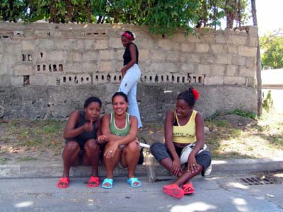 In und vor jeder Bank sitzen 2 Polizisten.. Soviel für heute, Liebe Grüße, Euer Schwarzmarktexperte 27.3.06 Hallo Ihr Lieben, Ich bin noch in Santiago und erlebe so allerlei: Heute war ich mit dem Bus in der Stadt. Kostet umgerechnet 1 Cent. Tomaten gibt es für ca. 24 Cent das Kilo, Lammkeule für ca. 2 Euro das Kilo, Auch Zwiebeln, Knoblauch, Reis, Süßkartoffeln, Grüne Bohnen, Weißkohl, Salat gibt es fast geschenkt. Teuer sind nur die Transporte, wenn man keinen Bus kriegt. Jeder, der ein Auto besitzt, quatscht Touristen an "Taxi, Taxi" und dann verlangen sie fast deutsche Taxipreise, man kann aber handeln. Der Tank ist immer fast leer und nachtanken tun sie nur 3 oder 5 Liter. So bleibt die Karre unterwegs oft stehen und dann haben sie meist eine Wasserflasche voll Benzin - heute hat mein Fahrer diese Flasche neben den Motor in den Motorraum gestellt, einen kleinen Schlauch reingesteckt und den statt der Benzinleitung an den Vergaser angeschlossen. Na ja, explodiert ist die Karre nicht, obwohl die Straßen sehr holperig sind und die Flasche nicht mal festgebunden war. Auch die Motorradbesitzer betätigen sich als Taxi, sprechen aber vorwiegend Kubaner an. Viele LKWs haben auf der Ladefläche Sitzbänke und Haltestangen und fahren wohl als private Busse, was man da zahlt, weiß ich noch nicht. | |