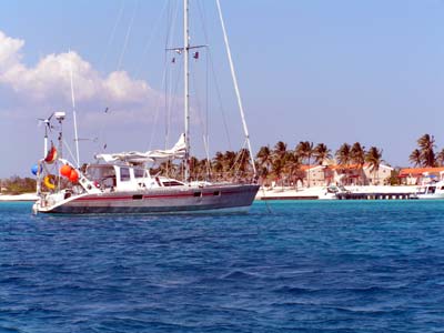 Liebe Grüße, von Eurem Seefahrer 12.3.06 Hallo Ihr Lieben, Wir schaukeln sanft auf dem klaren blauen Wasser, die Genua zieht uns bei leichtem Rückenwind mit 4 Knoten zu unserem nächsten Ankerplatz Cayo Anclitas, den wir kurz vor Dunkelheit erreichen wollen. Die Cayos los Jardines de la Reina sind ganz viele kleine Inseln mit Mangroven bestanden hinter einem Korallenriff, wohl meist unbewohnt bis auf wenige Fischer. | |